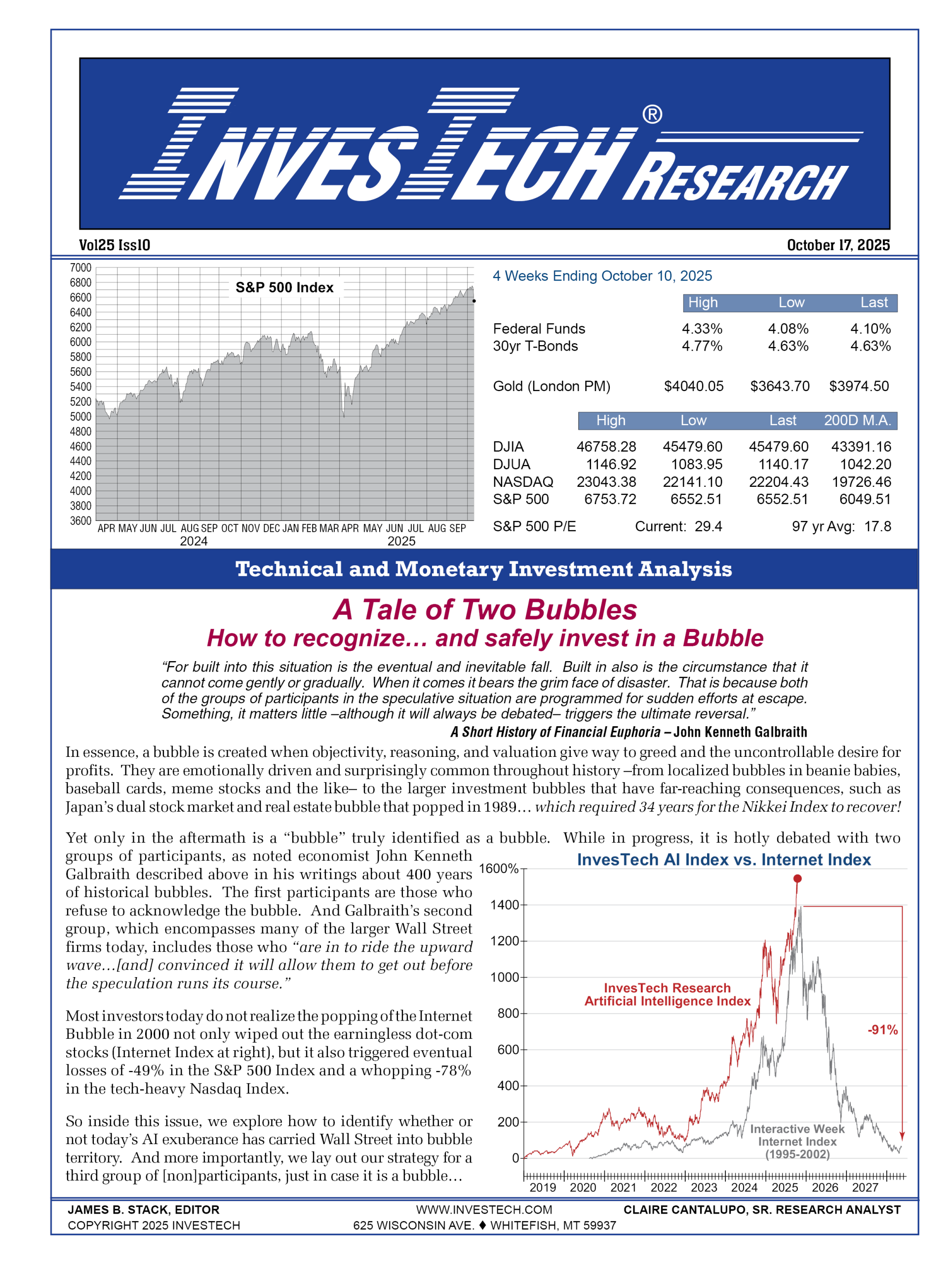 The monthly InvesTech Research newsletter contains both monetary and technical analysis and unique research.