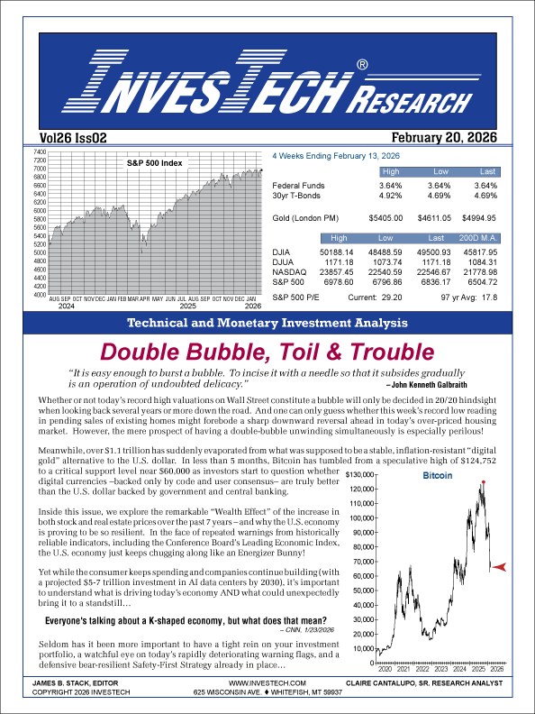 The monthly InvesTech Research newsletter contains both monetary and technical analysis and unique research.