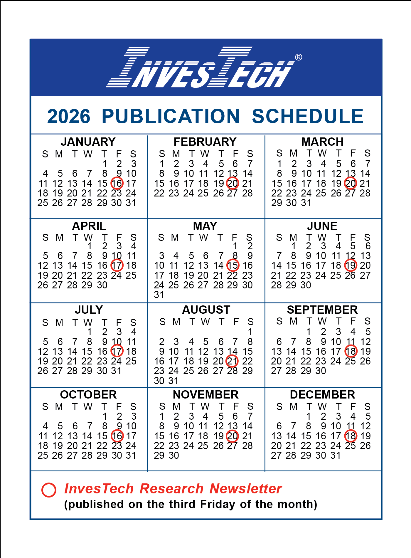 View our publication schedule for the entire year at a glance.