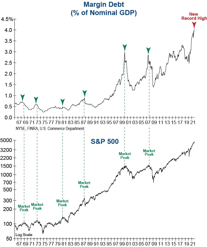 Margin debt surged to new highs in October in a clear indication that speculation remains alive and well in the stock market. Historically, peaks in margin debt have preceded or coincided with market tops. While the new high in margin debt today lessens this concern, its extreme level is an indication that there is still an excessive amount of speculation in the market today.
