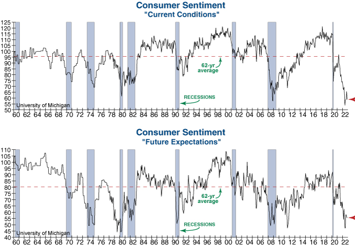 Consumer Sentiment from the University of Michigan declined this month, reversing much of its rebound from one of the most pessimistic levels on record. While the prior rebound in Sentiment was driven by an easing of inflation pressures, an increase in consumers’ inflation expectations in November has started to weigh on the measure once again. Furthermore, evaluations of the labor market worsened significantly, contributing to the decline in Sentiment. Both the Current Conditions and Future Expectations components fell in the latest report (see graphs below), and both remain at historically recessionary readings. This will be a key indicator to watch in the months to come as consumers continue to exhaust their options for keeping spending levels high this holiday season.