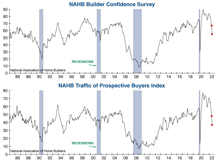 The National Association of Home Builders (NAHB) reported that Builder Confidence fell by -12 points in July, the biggest drop on record outside of the collapse in April 2020 during the COVID-19 lockdowns. The crucial Traffic of Prospective Buyers component also plummeted by the second-largest amount on record this month as affordability challenges weigh heavily on homebuying activity. In fact, the NAHB notes that 13% of builders had to reduce selling prices in order to drive sales and limit cancellations as demand has significantly waned. The collapse in these indicators confirms that the housing market is on very thin ice –and if the ice does soon break– there is almost no chance that the Federal Reserve will be able to execute an economic “soft-landing”…