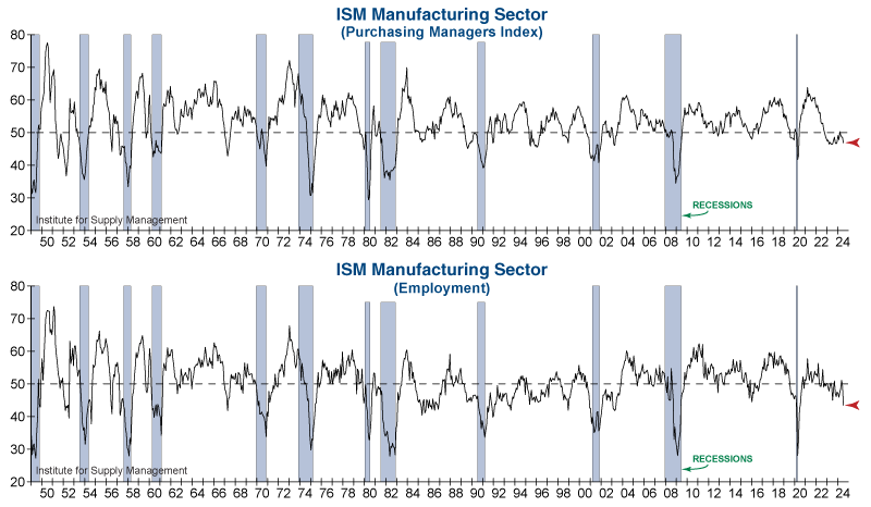 While just 30% of the economy, Manufacturing is highly impactful because it can be an excellent indicator of overall economic health. Continued and faster contraction in this sector could soon spill over into the broader economy.