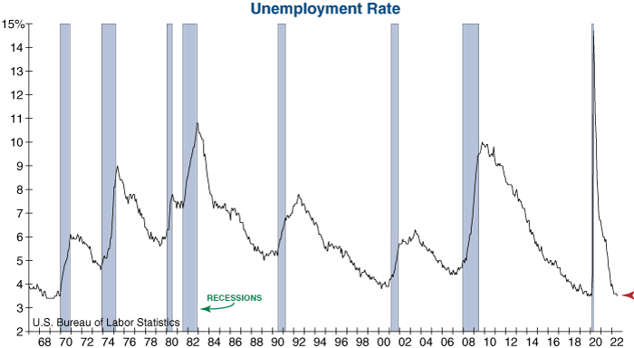 The more leading employment indicators shown above have reached levels often associated with the start of a recession, yet the Federal Reserve is most concerned with the unemployment rate which remains at a very favorable level. As a result, today’s positive employment report is one more factor that will keep the Fed tightening monetary policy in the months ahead.