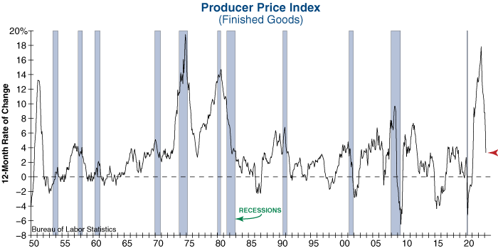This week’s releases for the Consumer Price Index (CPI), the Underlying Inflation Gauge (UIG), and the Producer Price Index (PPI) showed signs of an improving inflationary environment as all three inflation gauges saw continued declines in March.  However, while falling inflation seems like a positive development, a deeper analysis shows that drops of this magnitude tend to occur when economic conditions are potentially collapsing and there is little the Fed can do to “save the day.”
