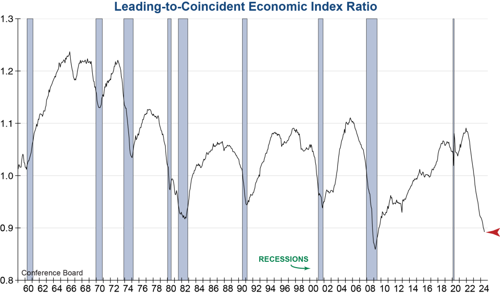 “The LEI’s annual growth rate has stabilized but remains negative, suggesting downward pressures on economic activity ahead.”
