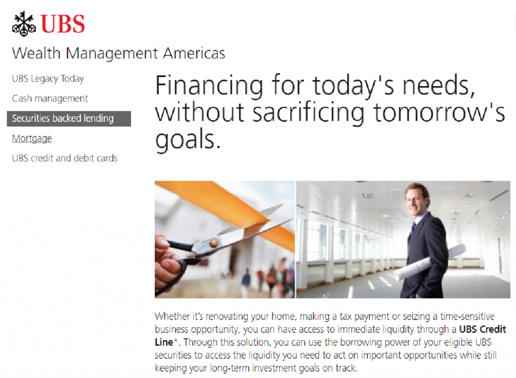 Looking at the promotional materials shown in this report from broker websites touting SBLs, who wouldn’t want to avail themselves of this offering? According to the ads, you’ve worked hard to grow your investments over the years; now you can capitalize on those assets to finance your dreams without drawing down your portfolio.
