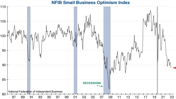 The National Federation of Independent Business (NFIB) reported that its Small Business Optimism Index fell by 1.1 points to 89.0 in April, the lowest reading since January 2013. Small businesses reported that they continue to face many problems – including inflation, labor cost and quality, and deteriorating customer demand. As a result, small business owners are now taking steps to hunker down in anticipation of hard times ahead…
