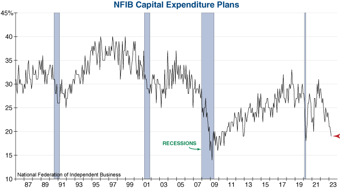 One way small businesses are preparing for a potential economic slowdown is by cutting their capital expenditure plans. Just 19% of small business owners have plans for a capital outlay in the next three to six months – one of the lowest readings in the survey’s four-decade history. This clearly shows a lack of confidence in future conditions, and another recent survey highlights that small businesses aren’t alone in feeling this way.