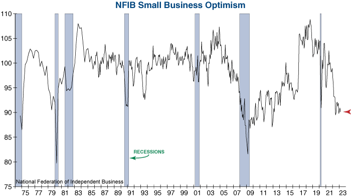 The National Federation of Independent Business (NFIB) reported that its Small Business Optimism Index for March declined by 0.8 points to remain at a historically low reading of 90.1. Small businesses have been plagued by a myriad of difficulties over the past two years, including high inflation and a shortage of qualified labor. Now, turmoil in the banking system has added to their woes…