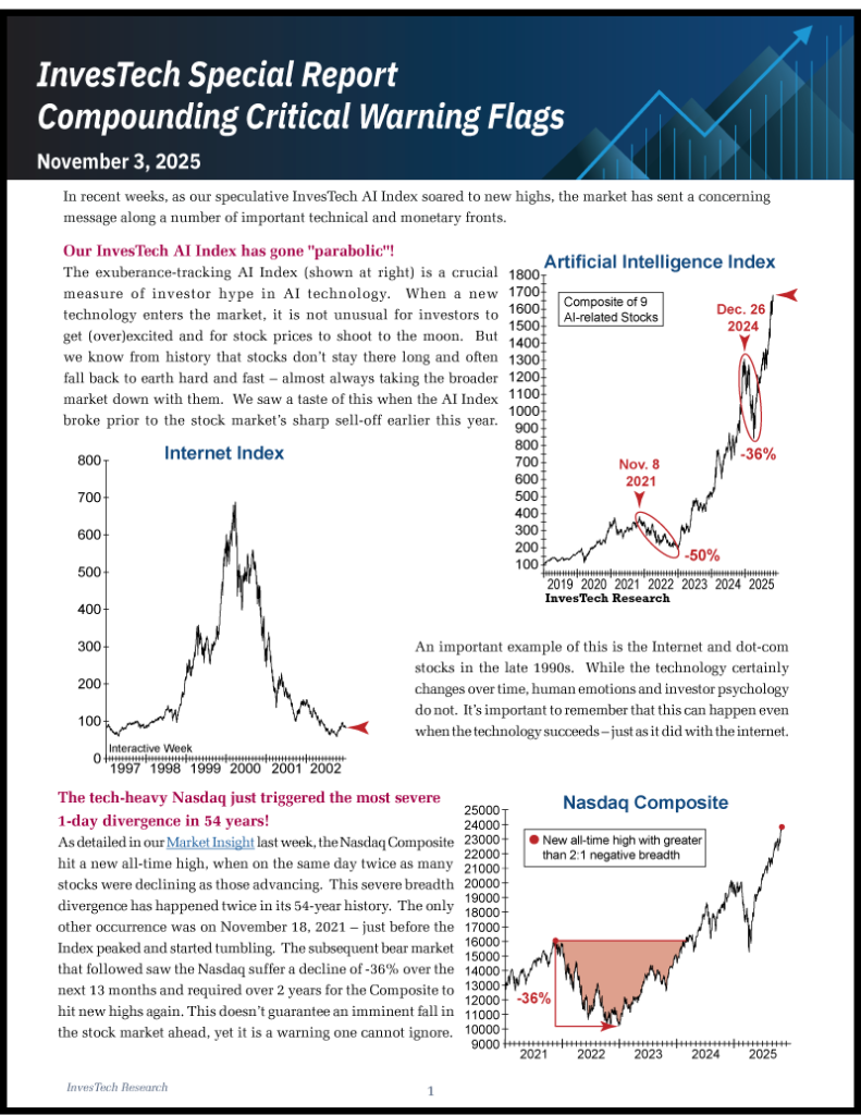 In recent weeks, as our speculative InvesTech AI Index soared to new highs, the market has sent a concerning message along a number of important technical and monetary fronts.