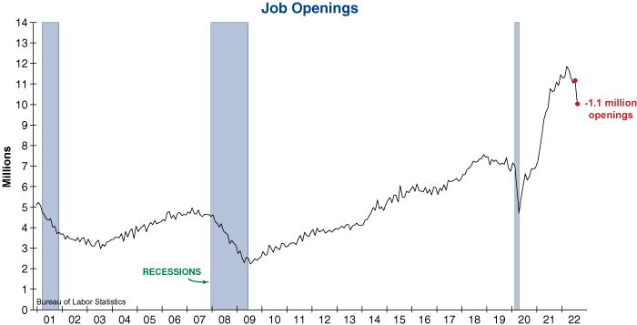 Earlier this week, the S&P 500 gained over +5.7% in just two days as poor macroeconomic data spurred hopes of a policy pivot from the Federal Reserve. One datapoint that led to the equity market rally was job openings, which plunged by the second-largest amount on record at -1.1 million openings. The only month that had more lost job openings was during the pandemic-related shutdowns in April 2020. This surprisingly negative report highlighted an increased risk of recession, causing many to speculate that Fed officials would reconsider further monetary tightening. However, the most important data to the Federal Reserve is keeping them on a tightening course…